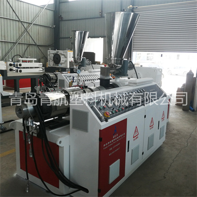 該生產(chǎn)線主要由錐型雙螺桿,模具、真空型臺、牽引機(jī)、切割機(jī)、翻料架組成。生產(chǎn)線采用自動化控制,自動化程度高,設(shè)備穩(wěn)定,操作簡便,生產(chǎn)效率高。通過更換不同規(guī)格的模具可以生產(chǎn)多種規(guī)格、尺寸、形狀、厚度的木塑裝飾墻板,木塑墻板,快裝墻板,生態(tài)墻板。
